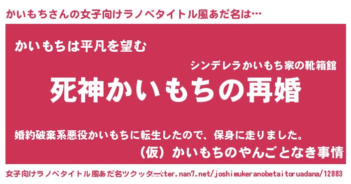 | 男性向けラノベタイトル風あだ名 | 『ノーゲーム・ノーカイモチ』 |