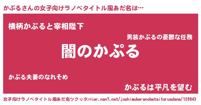 | 意味不明あだ名 | 『自称かぷる』『とにかく怪しいかぷる』 |
