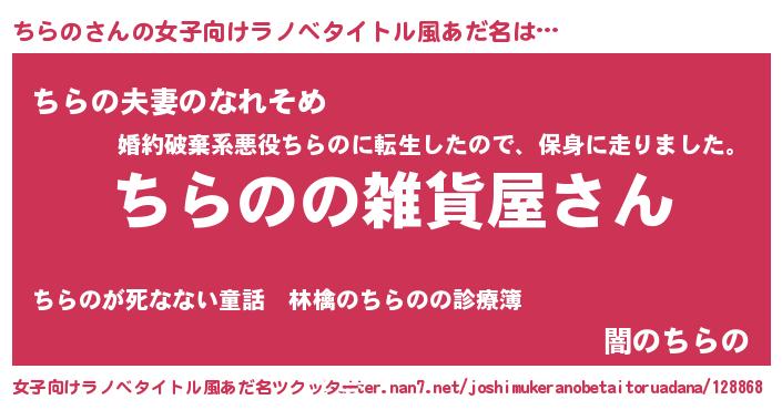 | 胡散臭い通販商品みたいなあだ名 | 『幸せが訪れる高級そうな絵画…その名も「ちらの」』 |