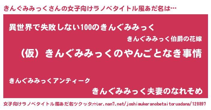 | 男性向けラノベタイトル風あだ名 | 『きんぐみみっくの憂鬱』 |