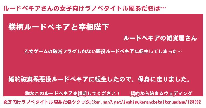 | 男性向けラノベタイトル風あだ名 | 『魔弾の王とルードべキア』 |