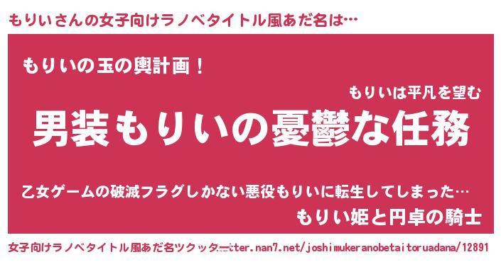 | 男性向けラノベタイトル風あだ名 | 『うちのもりいが世界を掌握している!』 |