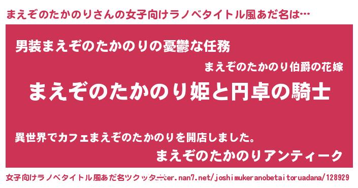 | 男性向けラノベタイトル風あだ名 | 『マエゾノタカノリアートオンライン』 |