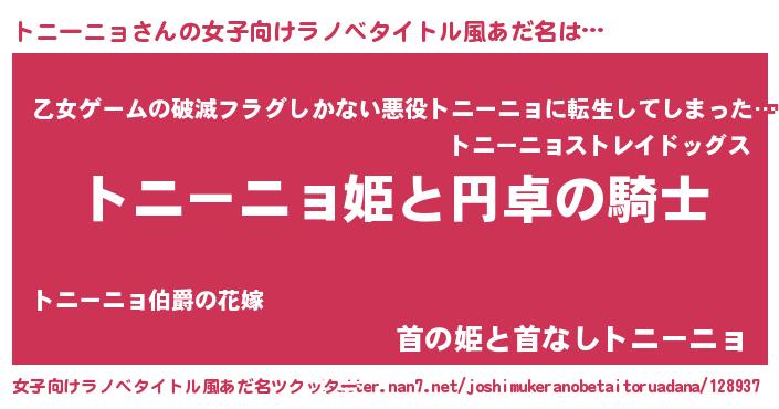 | 男性向けラノベタイトル風あだ名 | 『トニーニョの憂鬱』 |