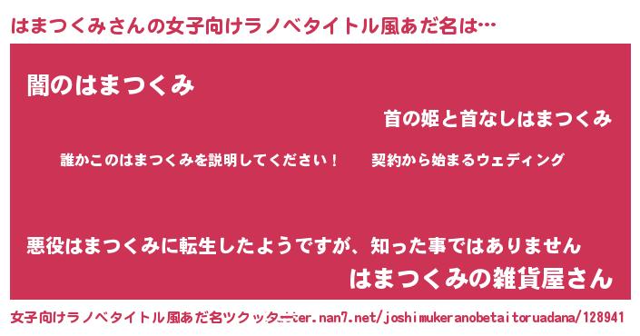 | 男性向けラノベタイトル風あだ名 | 『ハマツクミアートオンライン』 |