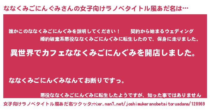 | 胡散臭い通販商品みたいなあだ名 | 『前代未聞の水素水…その名も「ななくみごにんぐみ」』 |