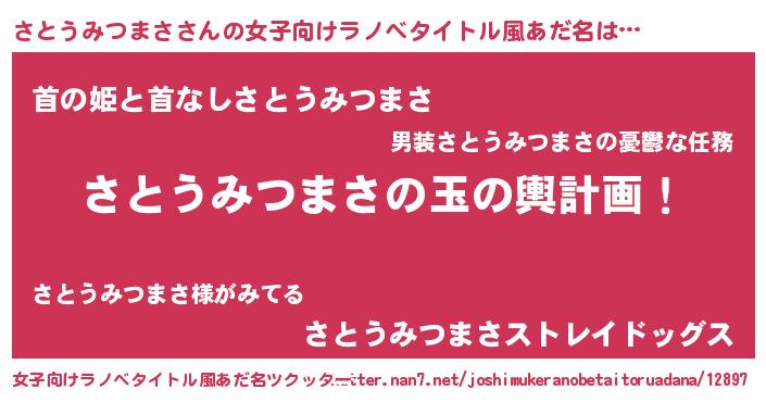 | 男性向けラノベタイトル風あだ名 | 『転生したらさとうみつまさだった件』 |