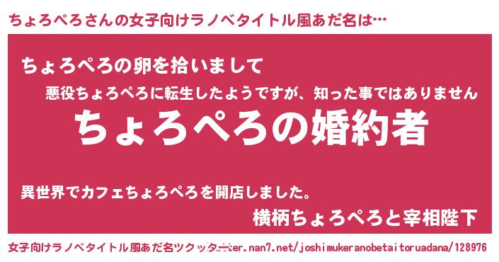 | ファンタジー風あだ名 | 『エターナルチョロペロー』 |