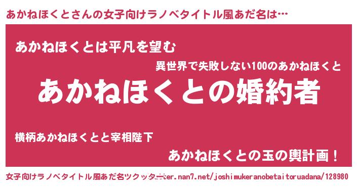 | ファンタジー風あだ名 | 『エターナルアカネホクトー』 |
