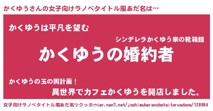 | ファンタジー風あだ名 | 『エターナルカクユウー』 |