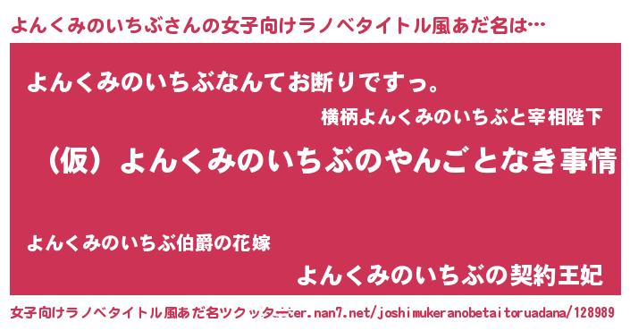 | 男性向けラノベタイトル風あだ名 | 『よんくみのいちぶの憂鬱』 |