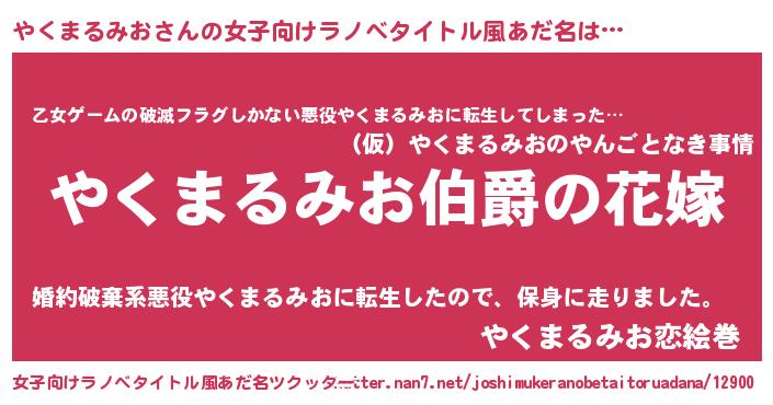 | 肩書あだ名 | 『やくまるみお総理大臣』 |