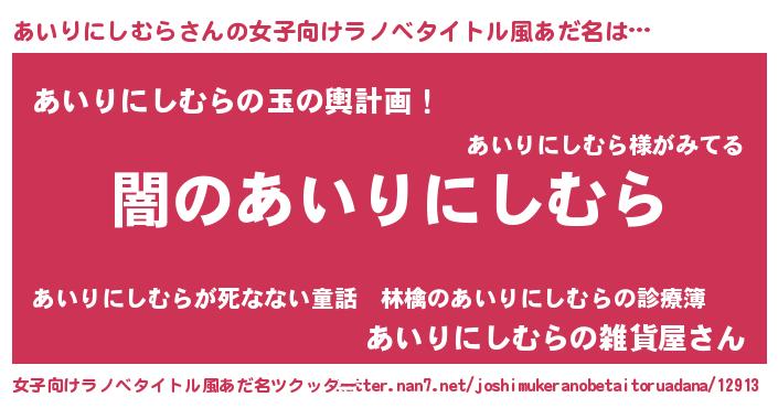 | 意味不明あだ名 | 『自称あいりにしむら』 |