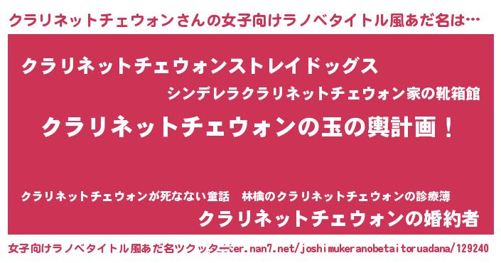 | 男性向けラノベタイトル風あだ名 | 『クラリネットチェウォン~年齢イコール彼女いない歴の魔法使い~』 |