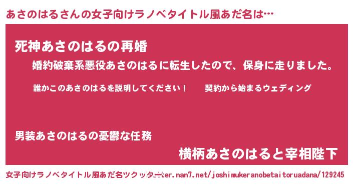 | 男性向けラノベタイトル風あだ名 | 『アサノハルアートオンライン』 |