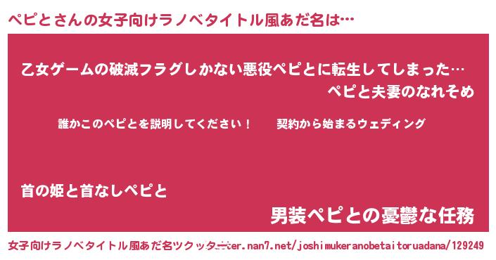 | 男性向けラノベタイトル風あだ名 | 『ペピトアートオンライン』 |