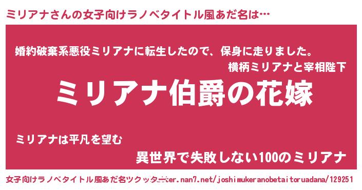 | 欧米人風あだ名 | 『ミリアナクリステル』 |