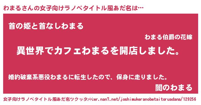 | 男性向けラノベタイトル風あだ名 | 『誰もが恐れるあのわまるが、ぼくの専属メイドになるようです。』 |