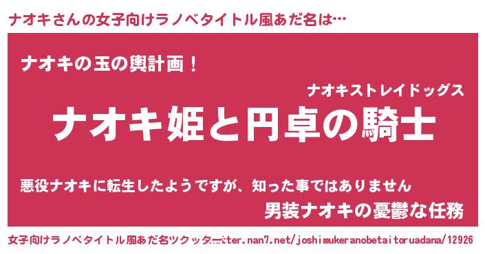 | 男性向けラノベタイトル風あだ名 | 『ナオキの憂鬱』 |