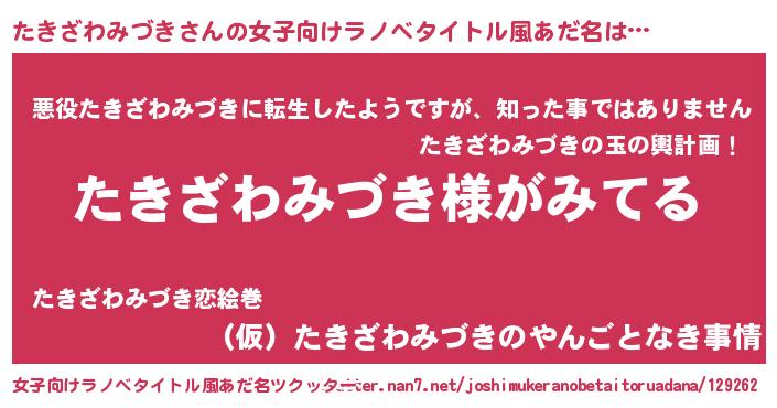 | ポケモン風あだ名 | 『ヒタキザワミヅキ』『ターキイ』 |