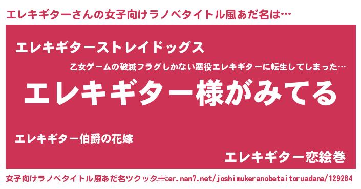 | 男性向けラノベタイトル風あだ名 | 『エレキギターの嫁は女の子じゃないと思った?』 |