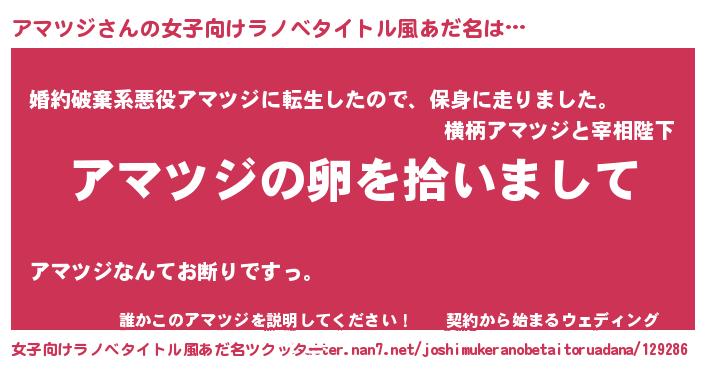 | 男性向けラノベタイトル風あだ名 | 『ダンジョンにアマツジを求めるのは間違っているだろうか』 |