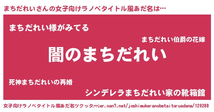 | 男性向けラノベタイトル風あだ名 | 『Re:まちだれいから始める異世界生活』 |