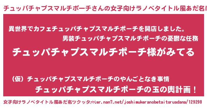 | 男性向けラノベタイトル風あだ名 | 『チュッパチャプスマルチポーチの嫁は女の子じゃないと思った?』 |