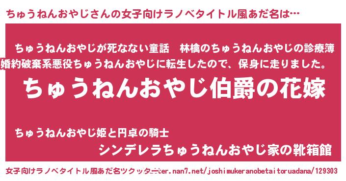 | ファンタジー風あだ名 | 『エターナルチュウネンオヤジー』 |