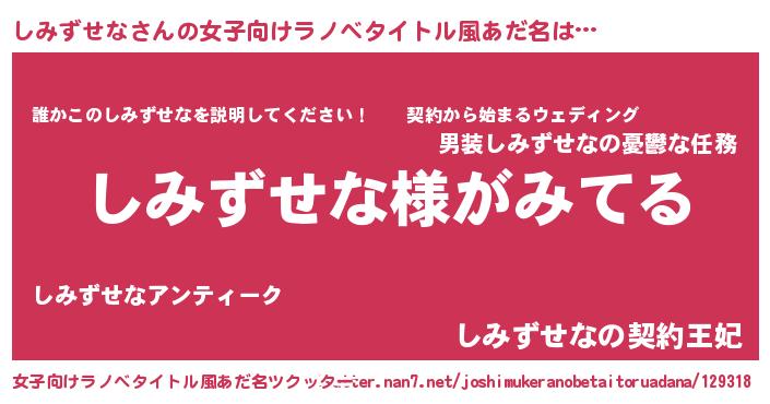 | 男性向けラノベタイトル風あだ名 | 『しみずせなの嫁は女の子じゃないと思った?』 |