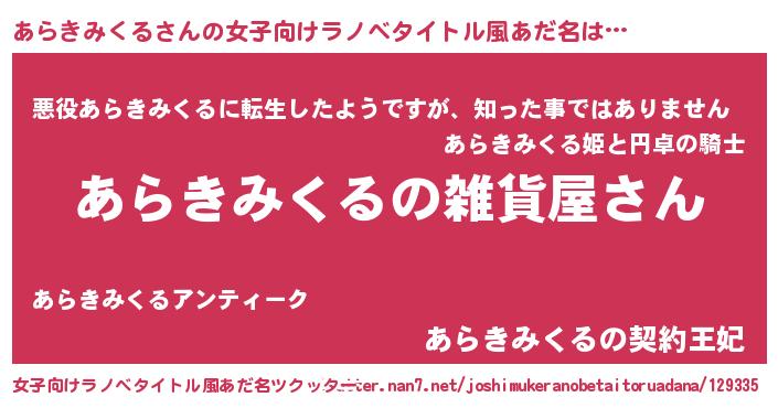 | 男性向けラノベタイトル風あだ名 | 『やはりあらきみくるの青春ラブコメはまちがっている 』 |