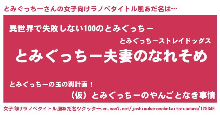 | 胡散臭い通販商品みたいなあだ名 | 『100人中100人が認めたイリジウム磁石…その名も「とみぐっちー」』 |