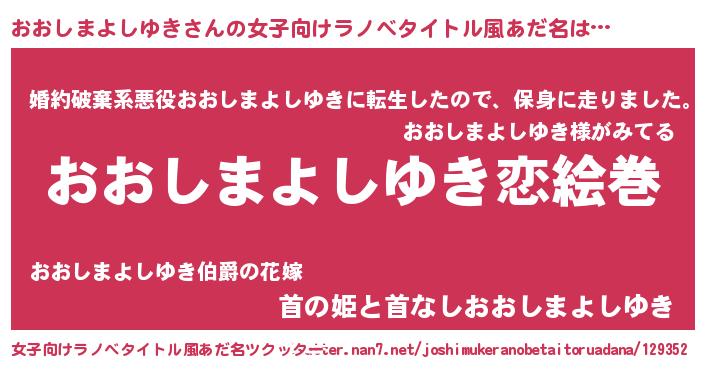 | 男性向けラノベタイトル風あだ名 | 『ノーゲーム・ノーオオシマヨシユキ』 |