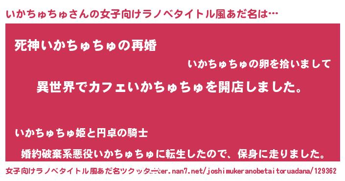 | 男性向けラノベタイトル風あだ名 | 『誰もが恐れるあのいかちゅちゅが、ぼくの専属メイドになるようです。』 |