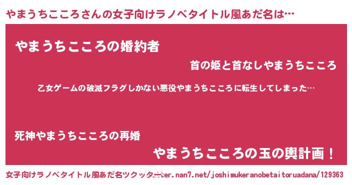 | 男性向けラノベタイトル風あだ名 | 『この素晴らしい世界にやまうちこころを!』 |