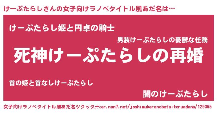 | 男性向けラノベタイトル風あだ名 | 『ノーゲーム・ノーケープタラシ』 |