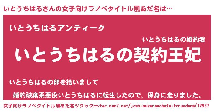 | 男性向けラノベタイトル風あだ名 | 『いとうちはるという概念が存在しない退屈な世界 』 |