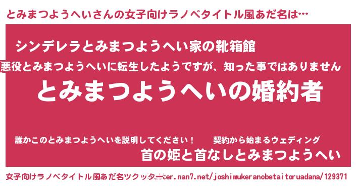 | 胡散臭い通販商品みたいなあだ名 | 『運命の人と巡り会える高級そうな絵画…その名も「とみまつようへい」』 |