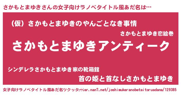 | 肩書あだ名 | 『さかもとまゆき総統』 |