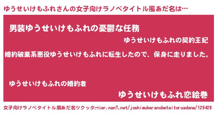 | 男性向けラノベタイトル風あだ名 | 『転生したらゆうせいけもふれだった件』 |