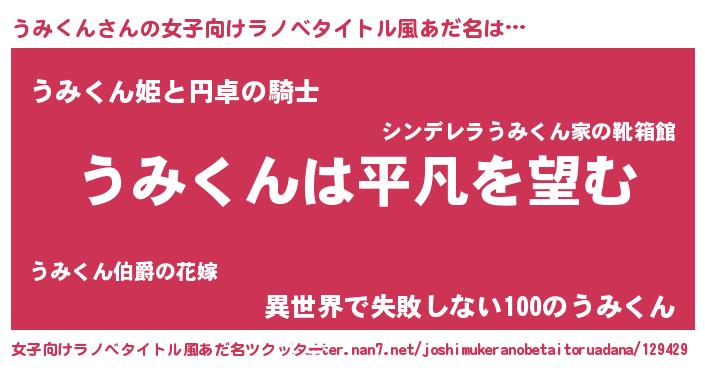 | ピコ太郎風あだ名 | 『ウミ史郎』『ウコ五郎』『ピコウ郎』 |