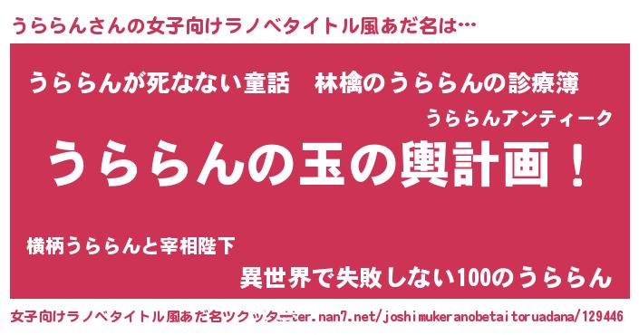 | 意味不明あだ名 | 『ニラ科うららん属』『永久保存うららん』 |