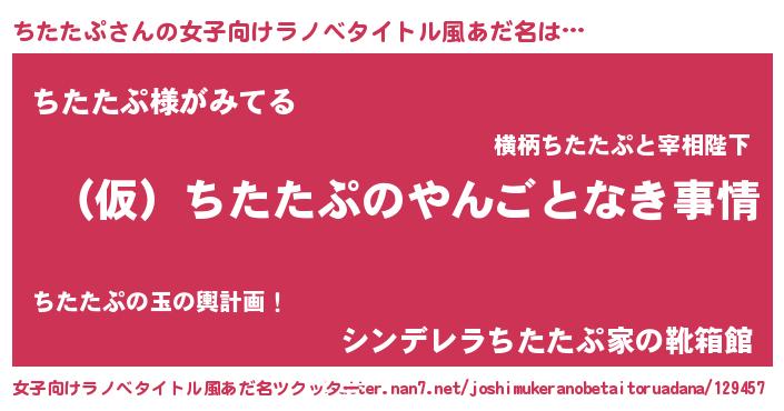 | 男性向けラノベタイトル風あだ名 | 『ちたたぷの憂鬱』『緋弾のチタタプ』 |