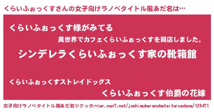 | 胡散臭い通販商品みたいなあだ名 | 『信頼と実績のサプリメント…その名も「くらいふぉっくす」』 |
