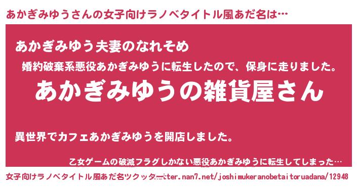 | 意味不明あだ名 | 『あかぎみゆうフォーエバー』 |