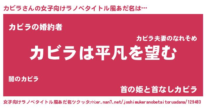 | 胡散臭い通販商品みたいなあだ名 | 『信頼と実績のサプリメント…その名も「カビラ」』 |