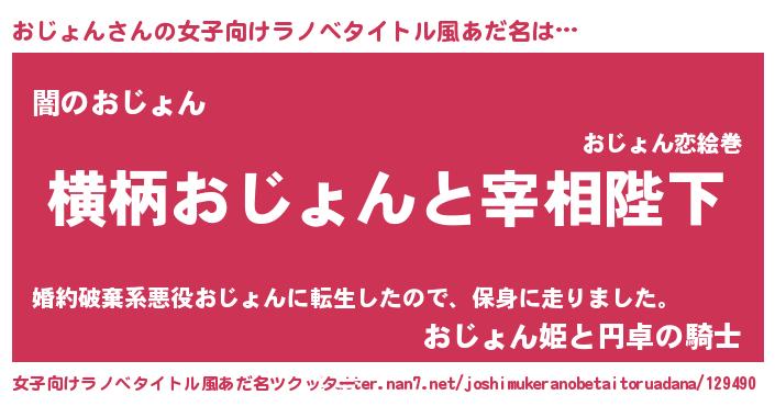 | 男性向けラノベタイトル風あだ名 | 『おじょんに滅ぼされるだけの簡単なお仕事です』 |