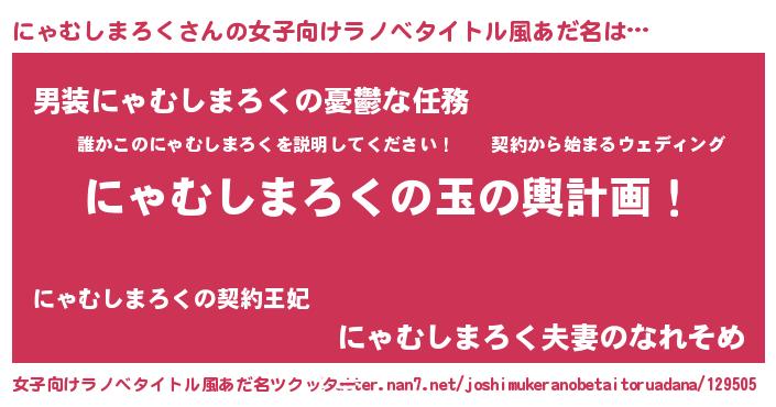 | 男性向けラノベタイトル風あだ名 | 『にゃむしまろく~年齢イコール彼女いない歴の魔法使い~』 |