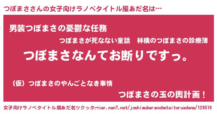 | 意味不明あだ名 | 『自称つぼまさ』『もやし科つぼまさ属』 |