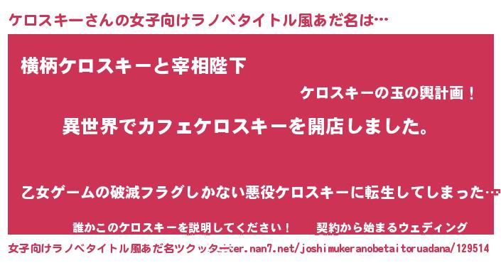 | 男性向けラノベタイトル風あだ名 | 『誰もが恐れるあのケロスキーが、ぼくの専属メイドになるようです。』 |